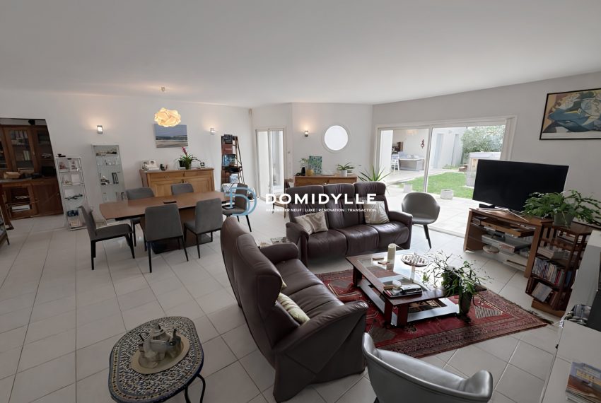 Située à Châtelaillon-Plage, au sein d’un environnement calme et résidentiel, cette maison de plain-pied d’environ 135 m2 séduit immédiatement par ses volumes généreux, sa luminosité et la qualité de ses prestations.